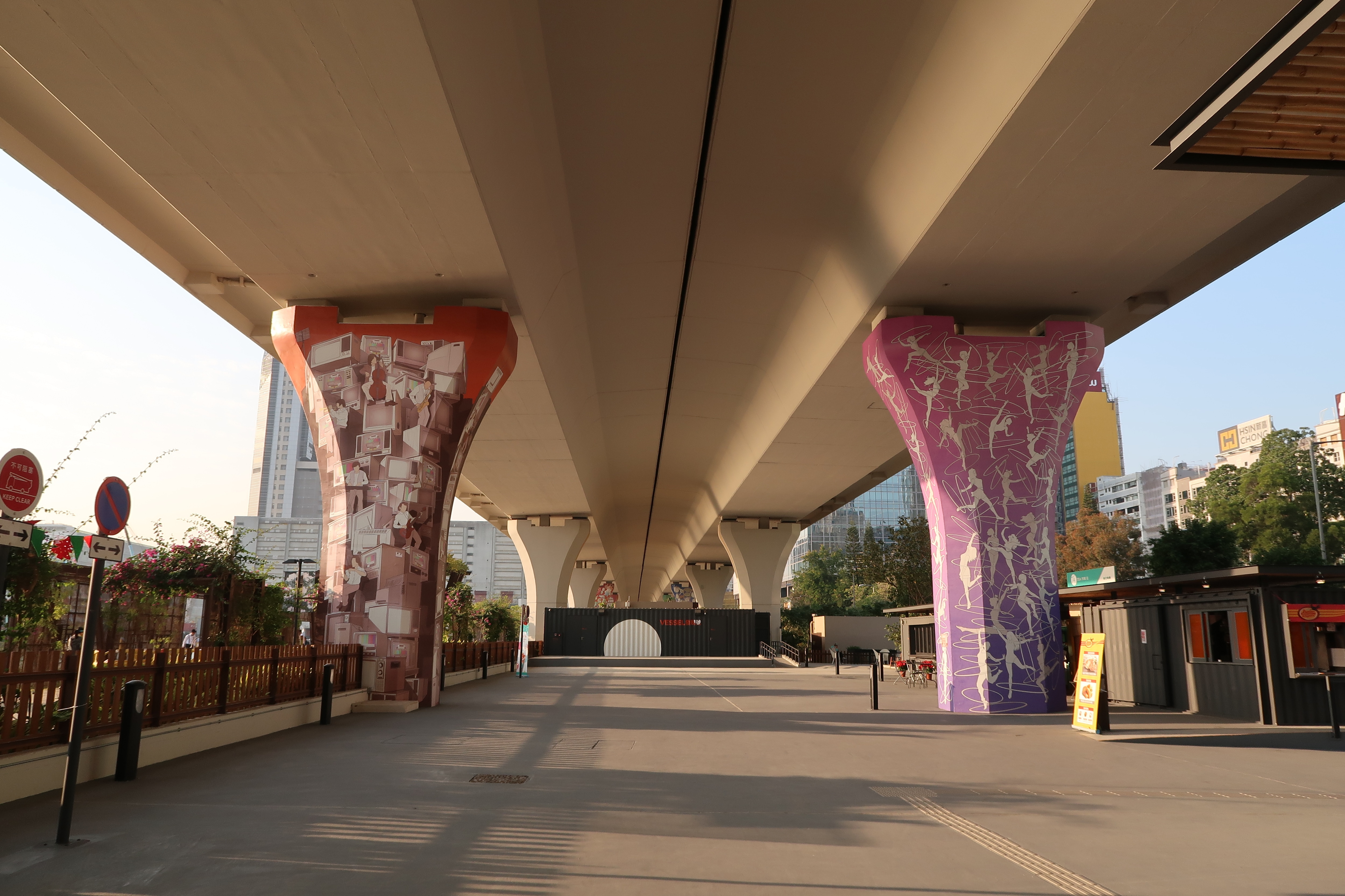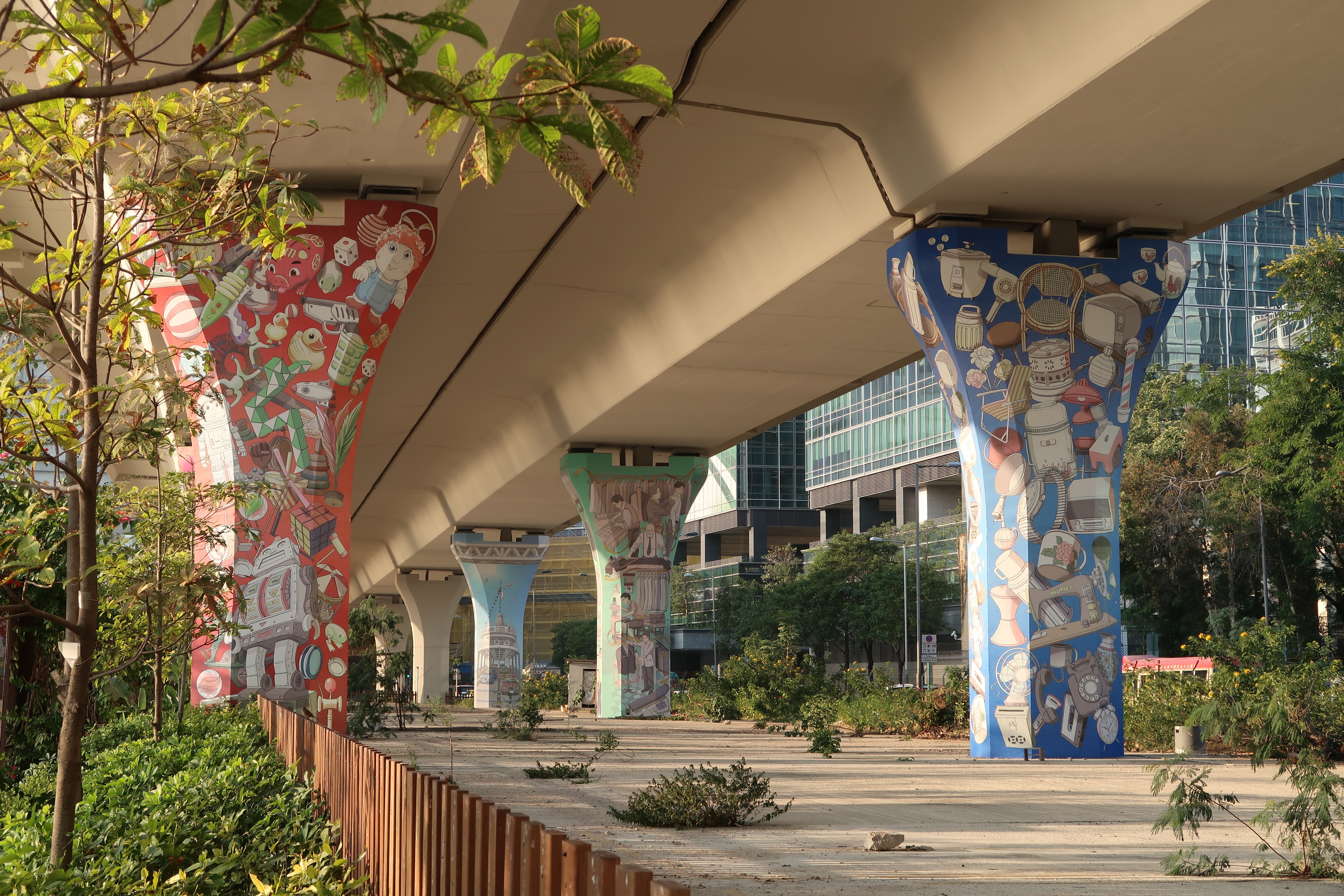 To celebrate the 20th anniversary of the establishment of the Hong Kong Special Administrative Region, the “City Dress-up Public Art Competition” was jointly organised by the Development Bureau, the Hong Kong Institute of Architects, the Hong Kong Institute of Landscape Architects, the Hong Kong Institute of Planners and the Hong Kong Urban Design. The winning entry with the theme “Urban Totem” of the “Flyover Fantasy” stream was used to decorate the columns of Kwun Tong Bypass situated on Hoi Bun Road for the official opening of the “Fly the Flyover Site 2 & 3” in the mid-September.
