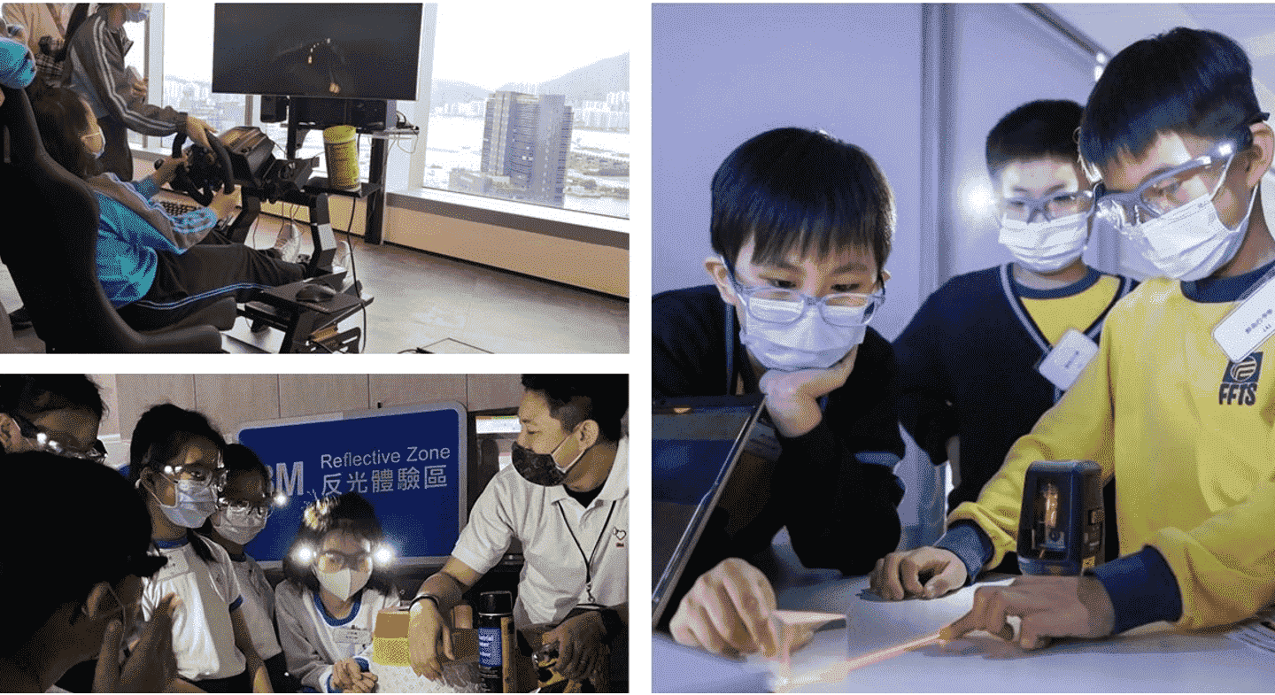 Through scientific experiments, students learnt about light reflection and refraction. Sat behind the wheel of the driving simulation system, students experienced the enhanced road safety made possible by road signs incorporating the latest light reflectivity technology.