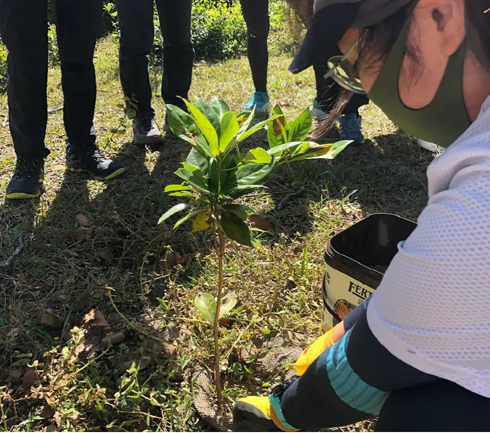 A specialist from our partner, The Green Earth, teaches the volunteers how to take care of the trees properly.