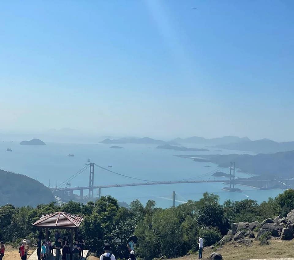 Standing in front of the plantation site at Shek Lung Kung, one can enjoy a picture-postcard vista of a cross-sea bridge under a deep blue sky.