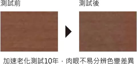 用於垂直表面時,耐候性約為10年以上,耐久性佳,利於保持外牆美觀。適用於建築物外牆、格柵、看板、門框或窗框等各種戶外應用,是外牆設計和外牆翻新時的理想選擇。