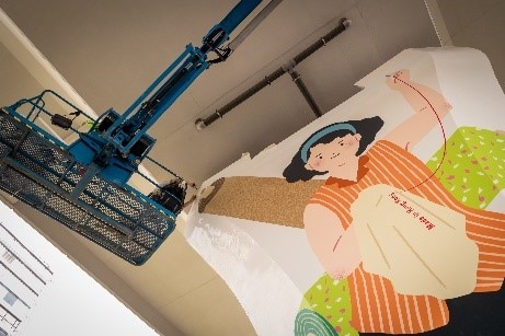 壁畫以得獎作品「Lift Up九龍東」為主題,勝出團隊由建築師梁安裕和設計師龍曉琳組成,透過三十組壁畫刻畫九龍東不同時期及不同行業的人物,記錄他們的工作和生活,表揚他們為九龍東發展付出的努力。負責項目籌劃的九十後年青建築師梁安裕表示,很高興能透過項目提供另一角度讓市民互動探索該區的歷史和趣事,為城市中的基礎建設賦予新一重意義。